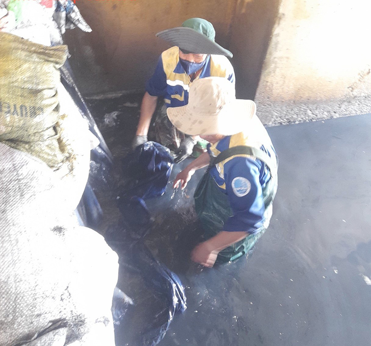 Thu dọn rác bịt các cửa thu nước ở P.Thạc Gián, Q.Thanh Khê